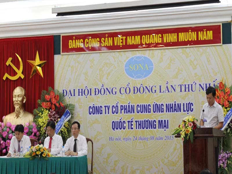 – Thời gian: Bắt đầu từ 13 giờ , ngày 24 tháng 08 năm 2015. – Địa điểm: Hội trường Văn phòng Bộ LĐ -TB & XH- Số 02 Đinh Lễ, quận Hoàn Kiếm, Hà Nội Kính gửi: Quý Cổ đông Công ty Cổ phần Cung ứng Nhân lực Quốc tế và Thương mại SONA Tổ giúp việc […]