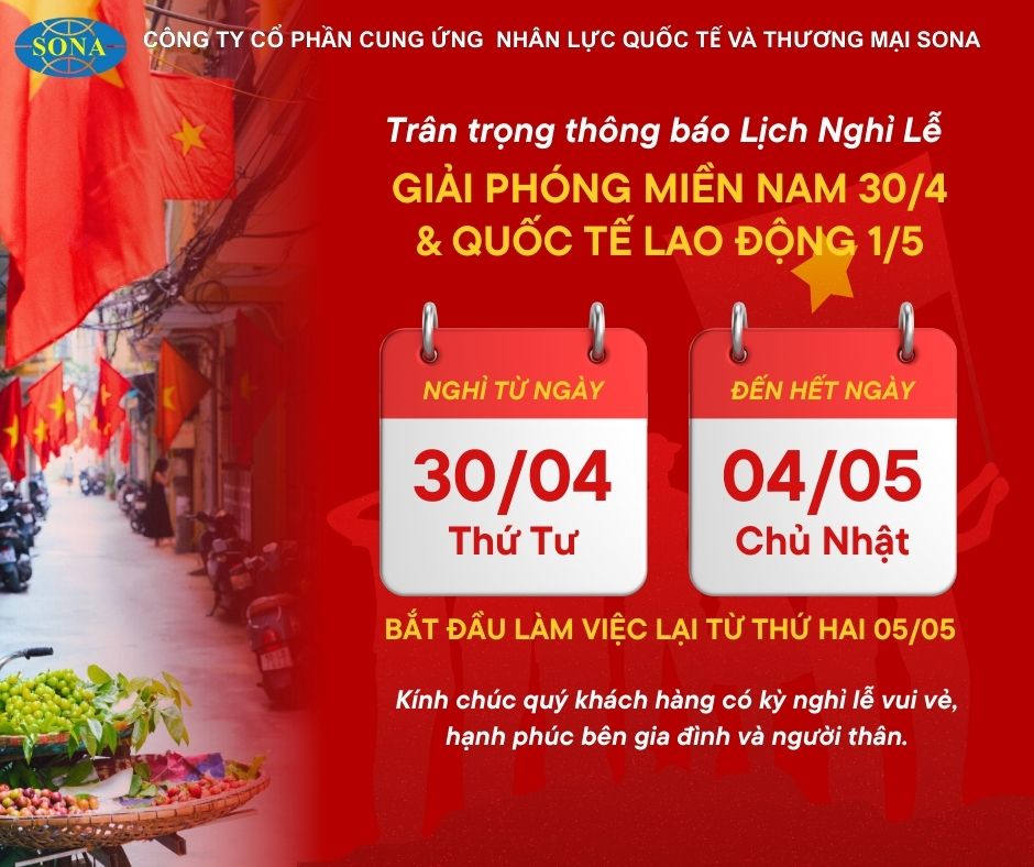 Với hơn 14 năm kinh nghiệm, SONA tự hào là đơn vị hàng đầu trong lĩnh vực tuyển dụng và cung ứng thuyền viên tàu cá gần bờ sang Hàn Quốc. Chúng tôi cam kết mang đến cơ hội việc làm ổn định, thu nhập [...]